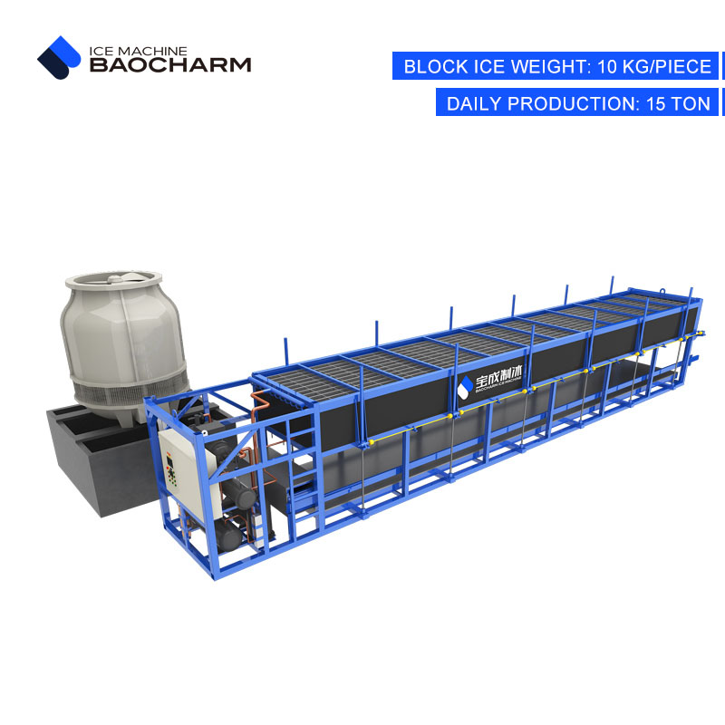 7500 kgเป็นที่เชื่อถือได้ ผู้ผลิตเครื่องทำน้ำแข็ง, BAOCHARM มีความเชี่ยวชาญด้าน โซลูชันเครื่องทำน้ำแข็งบล็อกความจุสูง ออกแบบมาเพื่อการใช้งานในอุตสาหกรรมโดยเฉพาะ รุ่น BCPY-3.75T-15T ของเราผลิตน้ำแข็งบล็อกขนาด 10 กิโลกรัม ได้ 15 ตันต่อวัน ผสานประสิทธิภาพ ความทนทาน และความแม่นยำ เพื่อตอบสนองความต้องการทั่วโลก การผลิตน้ำแข็งก้อน ในอุตสาหกรรมประมง การแปรรูปอาหาร และอุตสาหกรรมเคมี