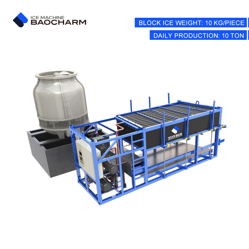 กำลังการผลิตสูง 10 ตัน/วัน ระบบโรงงานน้ำแข็งบล็อกอุตสาหกรรม สำหรับความต้องการการทำความเย็นและการเก็บรักษาในปริมาณมาก